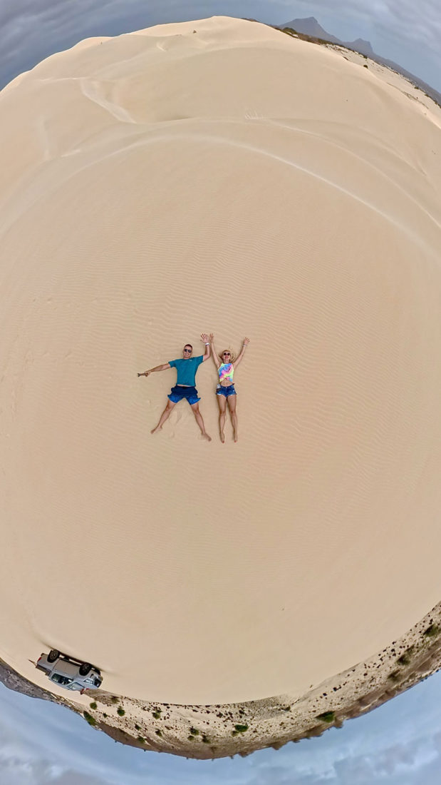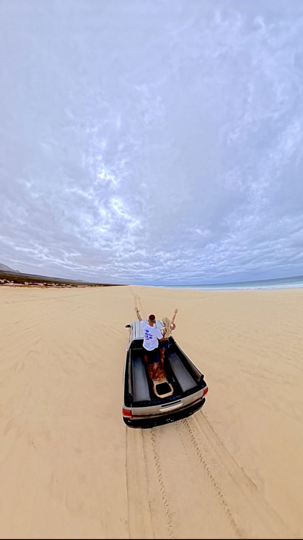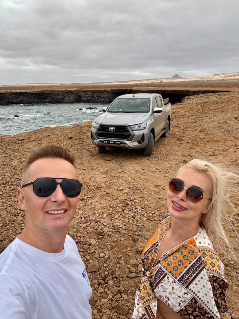 Każdy z tych punktów był wart uwagi, naprawdę! Na wycieczce testowaliśmy też nasiona baobabu, pod najstarszym baobabem na wyspie. Zachwyciła nas najdłuższa plaża na wyspie – prawie 40 km i bez ludzi! Zjeżdżaliśmy na pustyni na desce po wydmach – rewelacyjne przeżycie! Świetny klimat miał również przejazd Drogą 66 – robi wrażenie. Była jaskinia miłości, wiele uroczych plaż, wrak statku – który niestety niebawem za kilka/kilkanaście lat zniknie, słone jezioro, klimatyczne lokalne wioski, a także urwiska z których widać było w wodzie żółwie! Byliśmy też w fabryce ceramiki – patrzyliśmy jak mieszkańcy wytwarzają urocze pamiątki na naszych oczach, nawet zakupiliśmy kilka sami, aby ich wesprzeć. Na koniec jest również miasto Sal Rei, tam poszliśmy na trag kupić nasiona baobabu do domu.