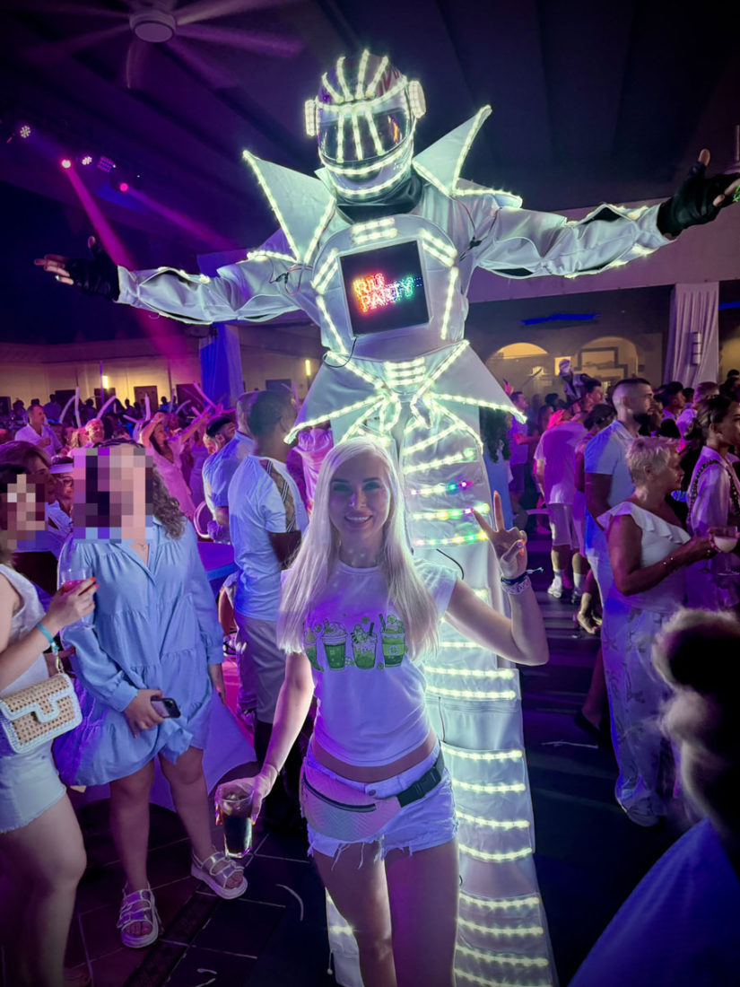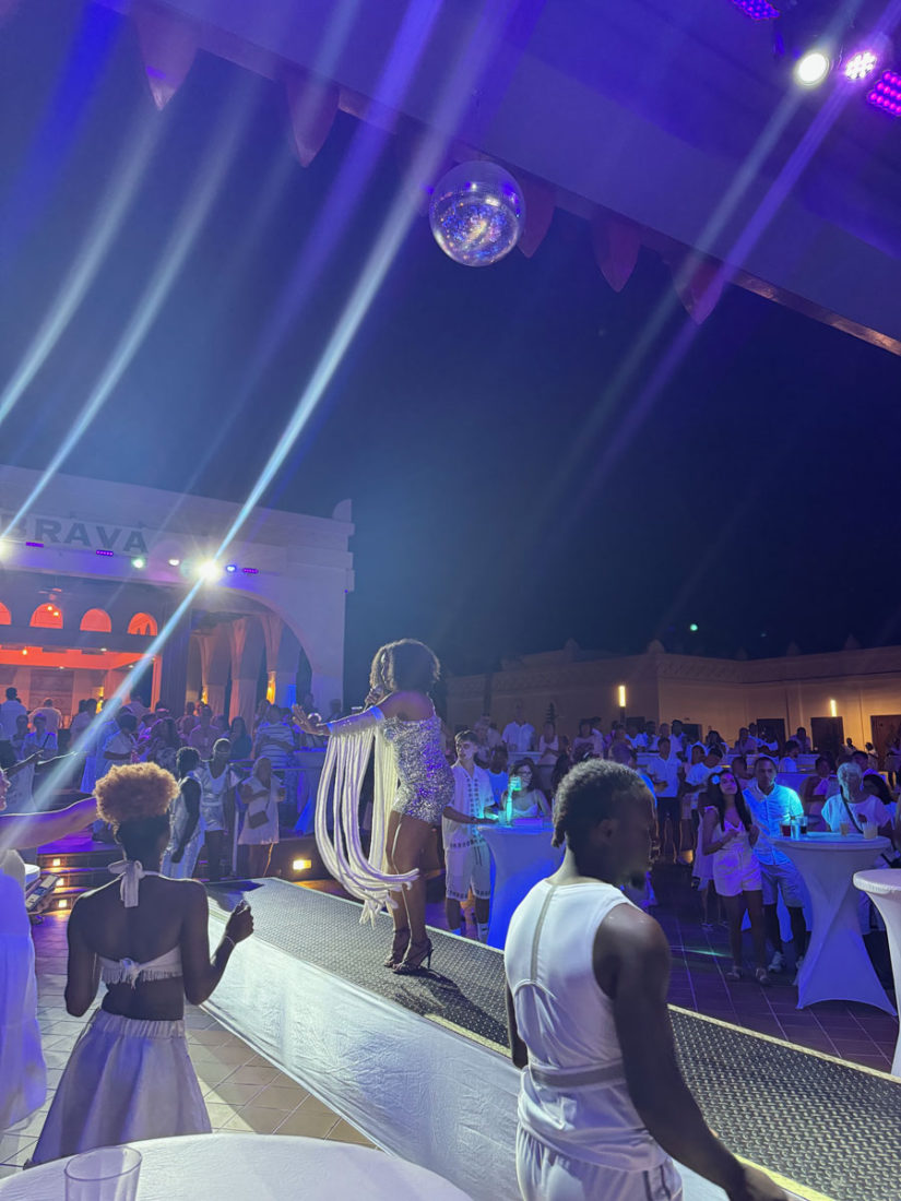 Animacje w hotelu są nie tak rozwinięte jak np. w Meksyku, ale jeśli będziecie chcieli poruszać się w ciągu dnia zawsze znajdziecie coś dla siebie – aerobik, piłkę itd. Jednak raz w tygodniu jest RIU Party i to jest mega impreza! Możecie trafić na białą imprezę lub neonową, nam trafiła się ta pierwsza. Przyznam szczerze, że to najlepsza impreza w hotelu na jakiej byłam. Wszystko super przystrojone, malowanie twarzy, tematyczne drinki, ścianka do zdjęć, animatorzy przebrani, a na start koncert na żywo. Następnie wspólne tańce z balonami, a potem wchodzi DJ – który naprawdę super grał, towarzyszyli mu tancerze, którzy odstawili naprawdę świetne show.