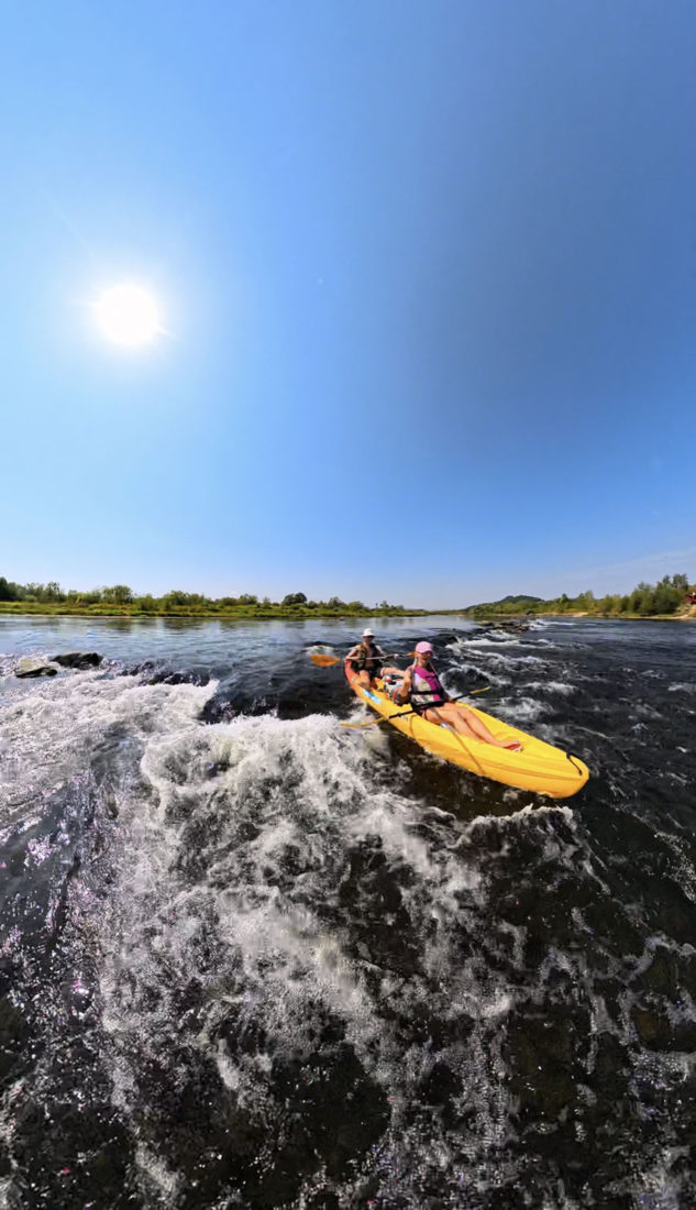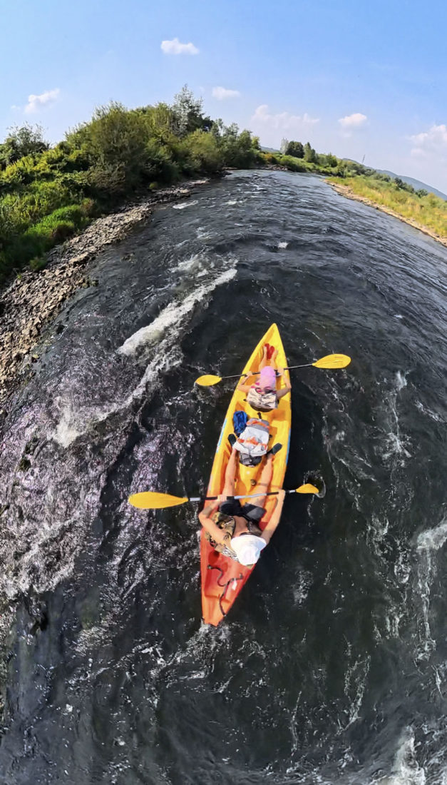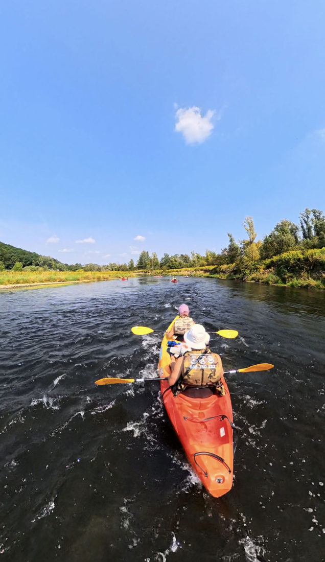 Przyznam Wam, że ta trasa, jej druga część, nowo odkryta przez nas, podobała się nam najbardziej! Niektóre odcinki to bardziej wymagające fragmenty trasy, dostarczą fantastycznych wrażeń- raz przemoczyło mnie przy nurcie, raz nawet zawiesiliśmy się na skale, a innym razem musieliśmy się kłaść pod gałęziami drzew aby przepłynąć – była fraiada😁