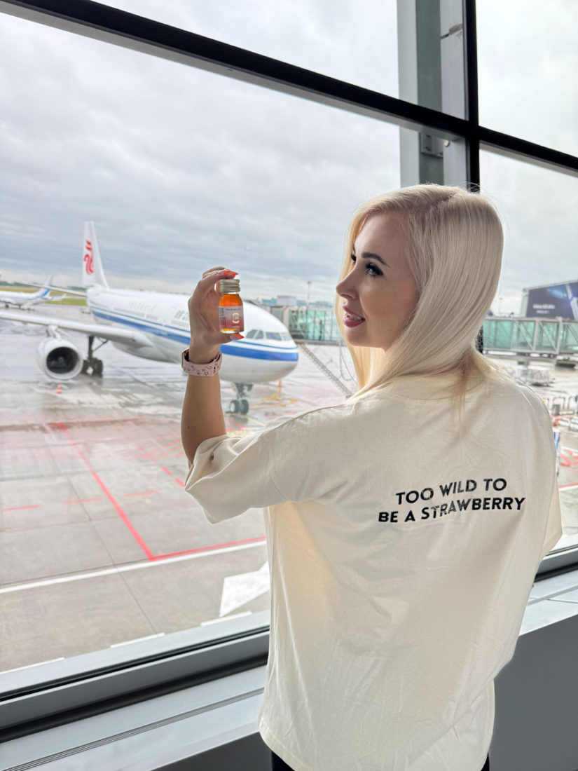 Tym razem mamy poziomkowy i do tego… można zamówić tematyczną koszulkę, którą widzicie na zdjęciu. Poleciała ze mną na Boa Vistę i od razu Wam daję znać, że jest świetnej jakości i mega wygodna!